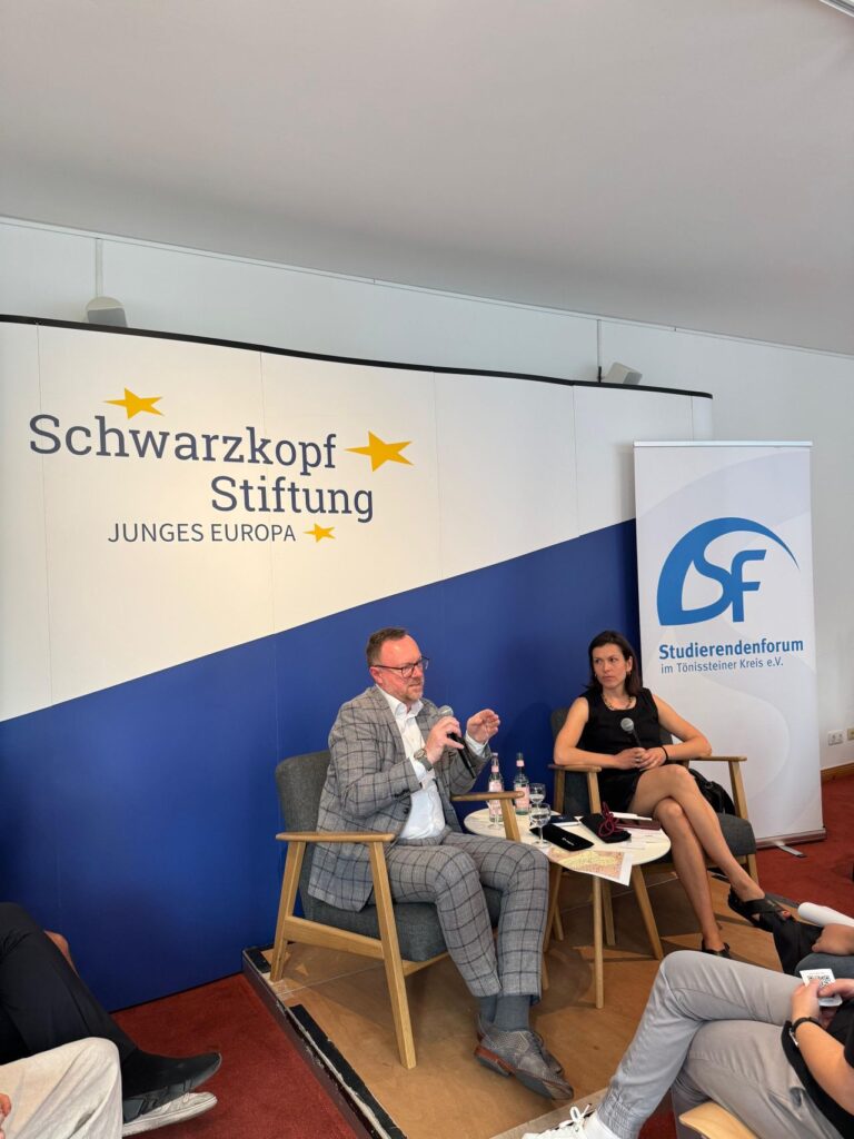 Mit der Veranstaltung „Gestern vertrieben, heute verschwiegen“ am 19. Juni 2025 in der Schwarzkopf Stiftung Junges Europa hat das Studierendenforum im Tönissteiner Kreis e.V. einen wichtigen Akzent im Bereich Erinnerungskultur und Menschenrechte gesetzt. Gemeinsam mit der Schwarzkopf Stiftung wurde ein Raum geschaffen, um an den Völkermord an den Jesid*innen zu erinnern, der durch den sogenannten Islamischen Staat seit 2014 verübt wurde, und die gesellschaftliche Aufarbeitung dieses Verbrechens zu fördern.